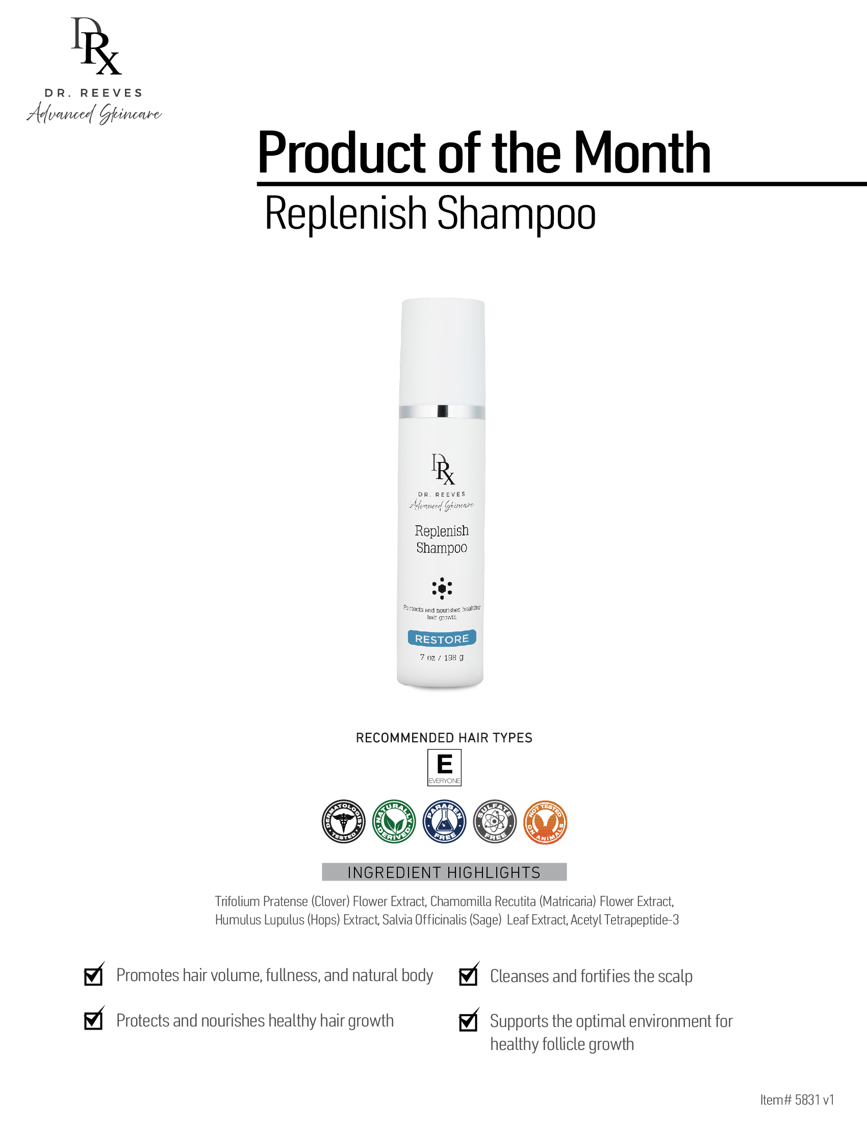 Creates a clean and healthy environment for hair regrowth and restoration. Adds fullness to thin, lifeless hair by expanding the shaft of individual hair follicles, leaving the hair with healthy body, volume, and shine. Gentle enough for daily use.
